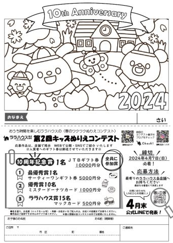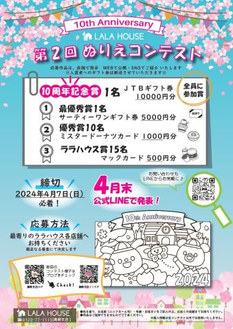 結果発表:R6年4月末頃、ララハウス公式LINEにて発表