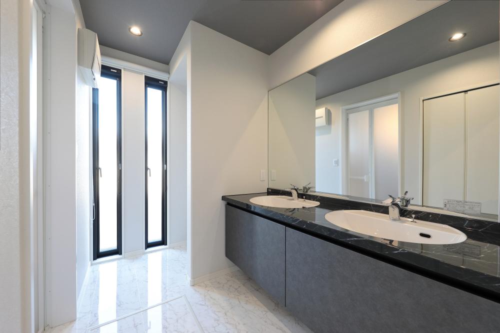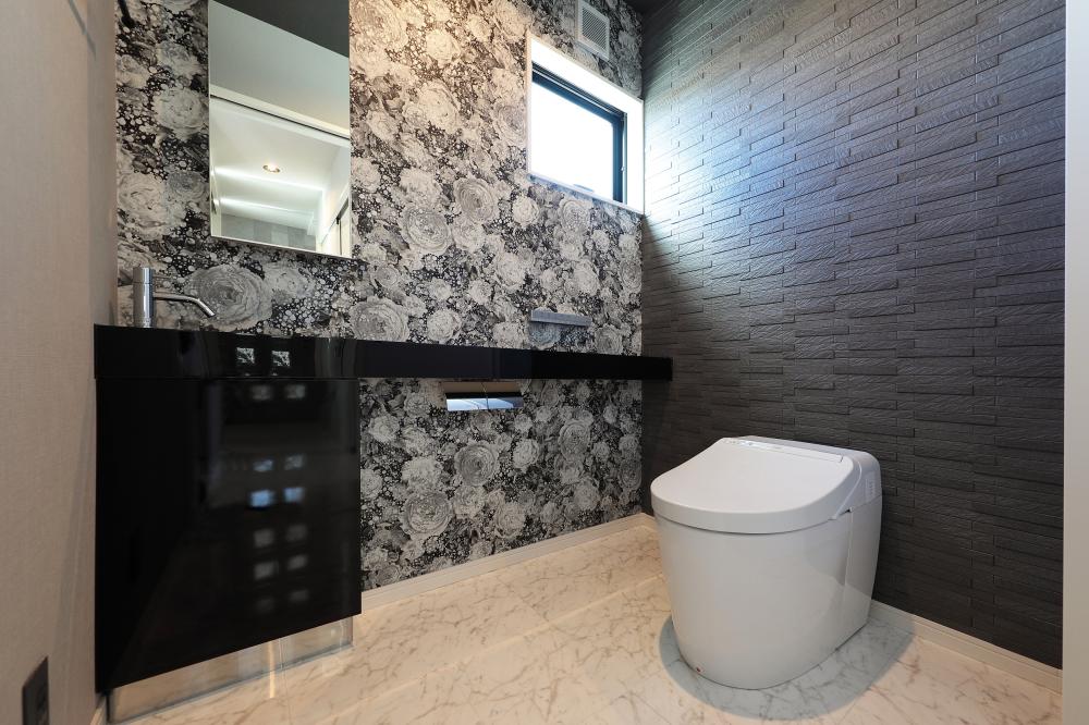 洗面所やトイレまでスタイリッシュに仕上げるなど細部にまでこだわり、お施主様ご希望の非日常的な印象の特別なお家が実現しました。