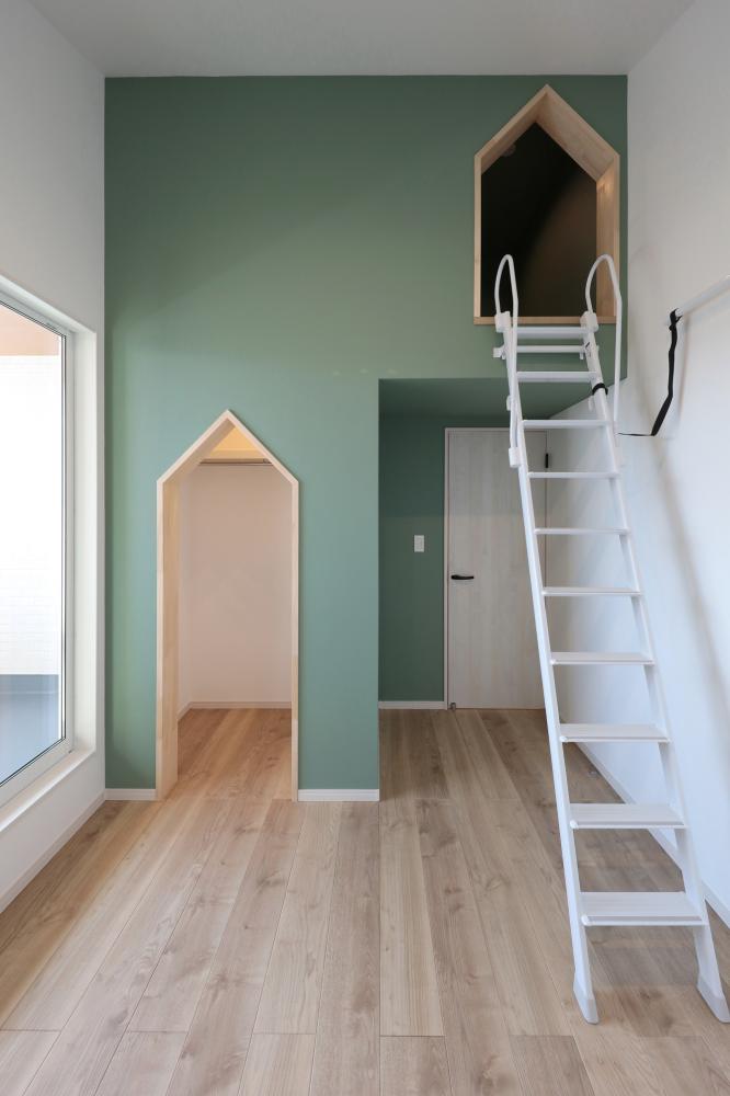 また、少しだけ遊び心もプラス。ロフトとクローゼットの入口はお家の形に型取りました。