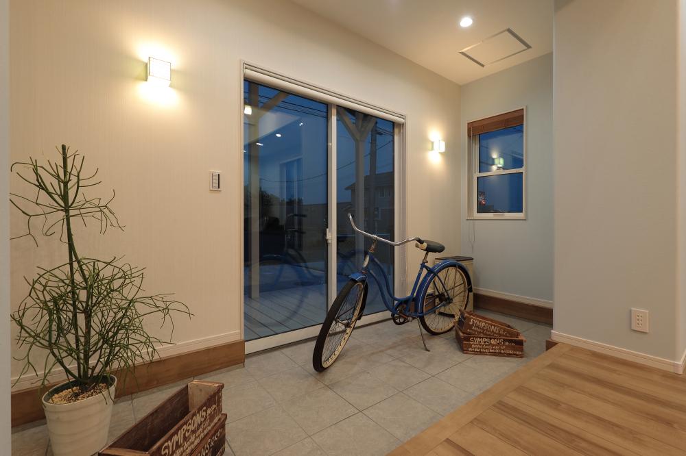 家の「外」「中」といった境界線を目立たなくし、玄関からそのまま繋がるテラス。お庭から直接リビングへ!