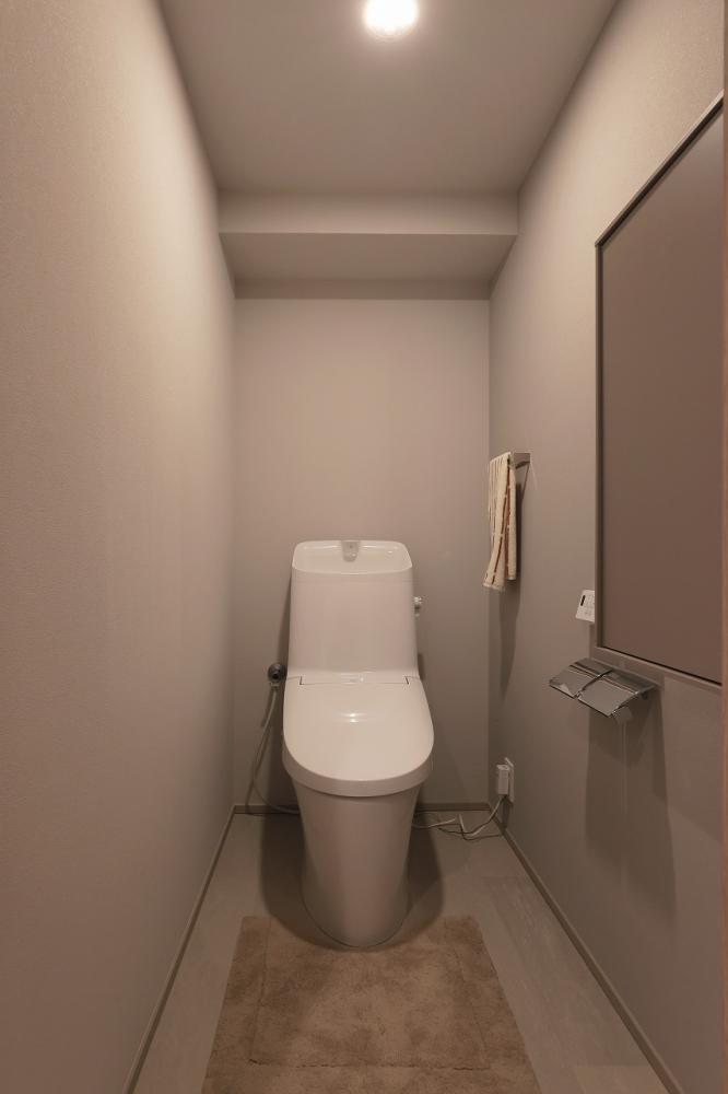 【トイレ】Lixilのシャワートイレ。スリムな形状で掃除がしやすい設計です。