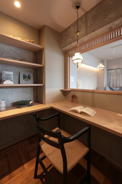一部現わしにした躯体の雰囲気とも相性が良く、落ち着いた空間を演出してくれています。