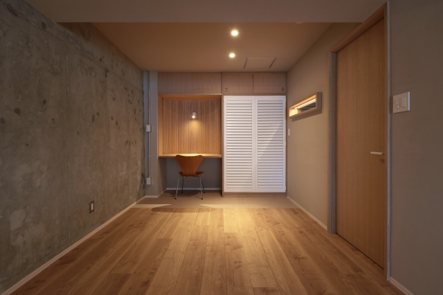 洋室も同様、当初あったLDKとの間の壁は解体し間仕切りにガラス戸を設け抜け感を演出しました。