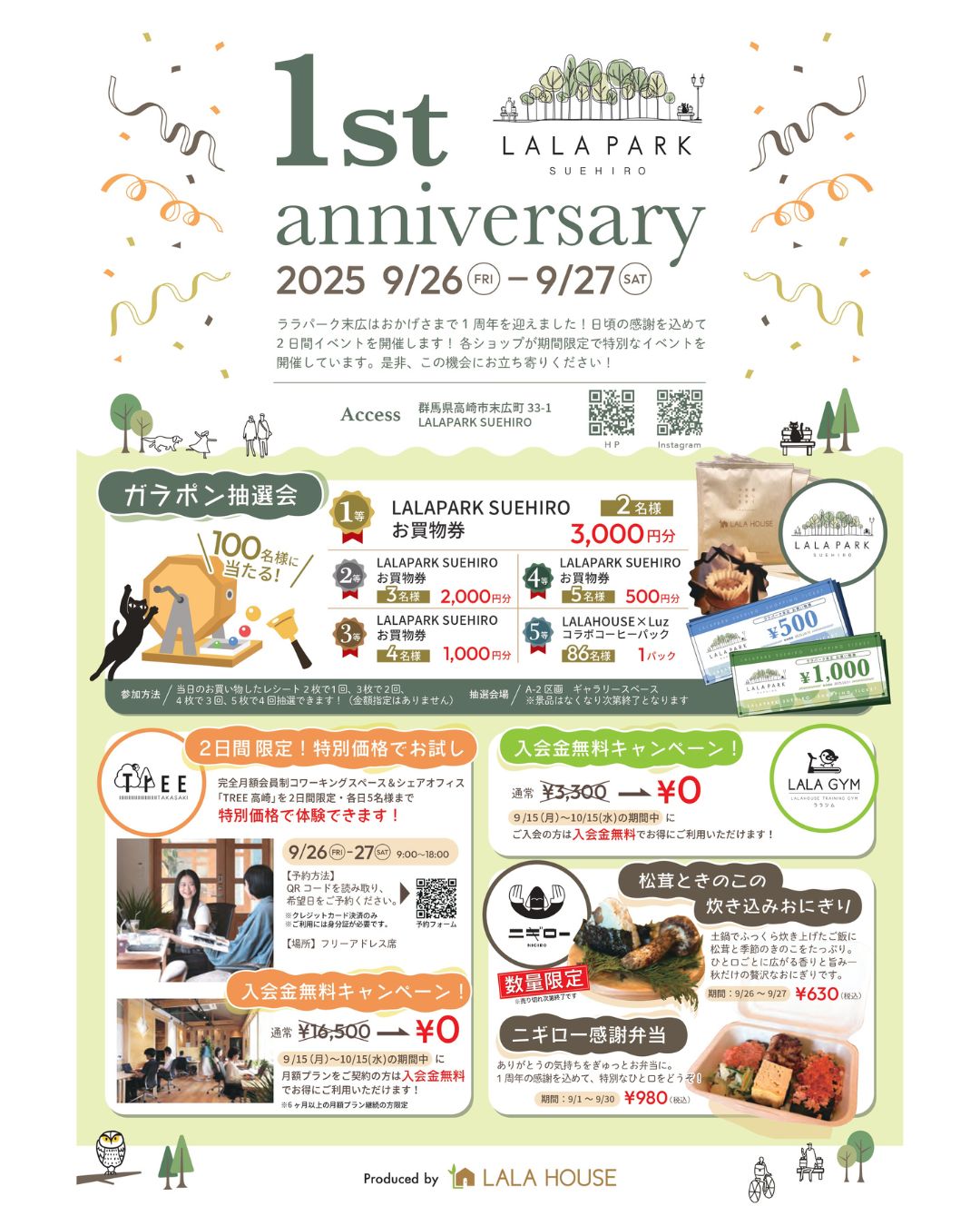 ララパークスエヒロはおかげさまで《1周年》を迎えます!