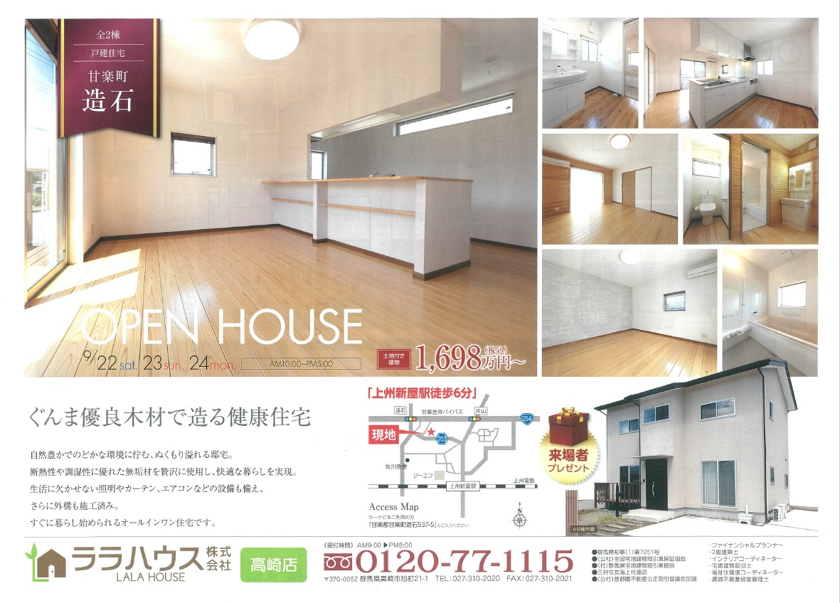 甘楽町造石のオープンハウスについての折り込みチラシを配布致しました!