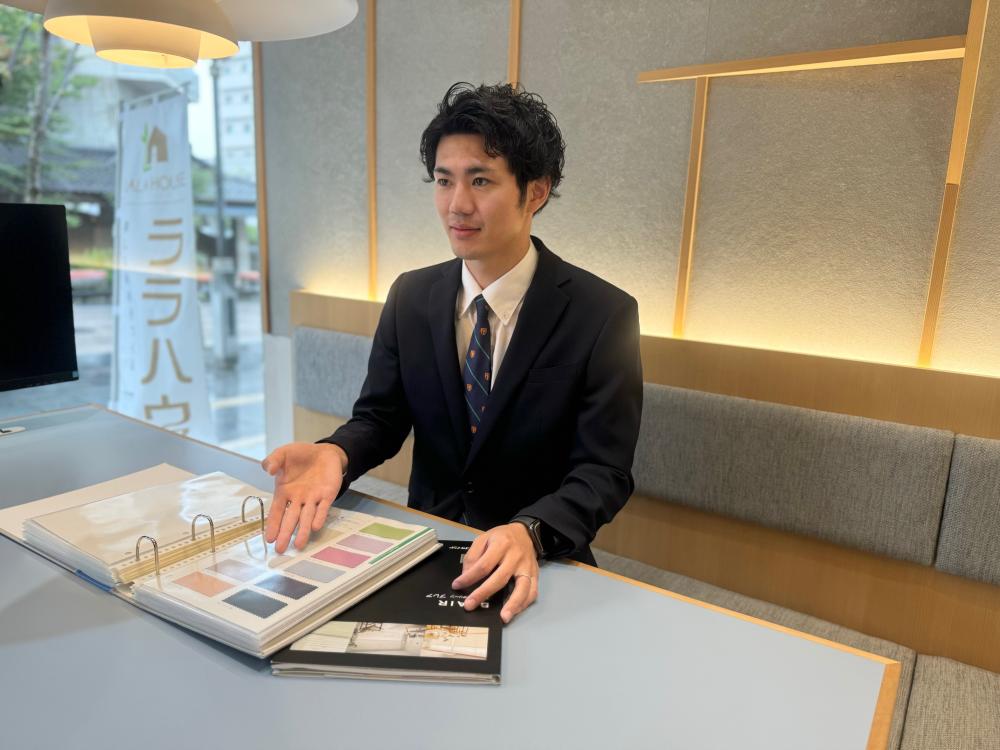 不動産売買の営業を担当しております。お客様の気に入った住宅に住んでいただけるように不動産物件をご提案しています。住宅ローンを利用される方には安心してご購入頂けるよう、資金計画等の資料を使って各銀行の情報や、受けることのできる補助金などのご説明もしております。家を売ると言うよりは、住宅購入に悩んでいるお客様の背中を押してあげることが仕事だと思っています。初めて住宅購入を検討される方にも、安心して相談いただけるよう努めております。お引渡しが終わったら終わりではなく、末永くお付き合いさせていただきます!
